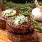 - Rest and Finish: Once cooked, transfer the steaks to a plate. Top each steak with half of the prepared garlic herb butter, loosely cover with aluminum foil, and let rest for 10 minutes. This resting step allows the butter to melt over the meat and juices to redistribute for enhanced flavor and tenderness.
