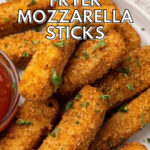 This easy recipe shows you how to make perfectly crispy frozen mozzarella sticks in the air fryer. With a quick preheat and a short 7-minute air frying time, you get gooey, melty cheese encased in a crunchy coating, ready to enjoy with your favorite dipping sauce like classic marinara.