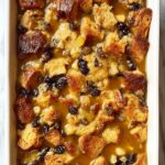 - Add custard and rest: Pour the custard over the bread mixture, let it sit for a couple minutes, then press down on the bread with your hands to fully submerge it. Let the casserole rest for 15 minutes, then evenly top with cubed butter.