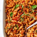 Medium-shaped pastas like gemelli, fusilli, rotini, and casarecce are ideal because they capture the sauce beautifully. That said, you can use almost any pasta you like, from penne to farfalle, or even gluten-free alternatives.
