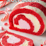I’ve served this roll sliced on a festive platter surrounded by whole candy canes and fresh cranberries. For Christmas Eve, I sometimes wrap the whole roll with a red ribbon for gifting or make mini rolls in mini loaf pans – they make adorable gifts or individual servings for a party.
