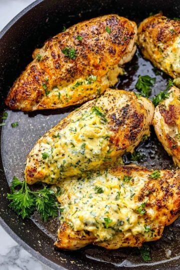 To brighten up the plate and add a fresh touch, sprinkle freshly chopped parsley or chives over the stuffed chicken breasts just before serving. A light drizzle of lemon juice can also elevate the flavors nicely without overpowering the creamy, cheesy filling.