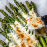 I haven’t tried freezing this roasted asparagus with cheese on top because the texture can change. If you want to freeze asparagus, roast it plain and add cheese after reheating instead — that way you keep the best taste and texture.