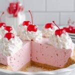 This Cherry Kool-Aid Pie is a no-bake, easy-to-make dessert perfect for hot summer days. With a creamy cherry-flavored filling made from cream cheese, sweetened condensed milk, and Kool-Aid, it's a refreshing treat that chills to perfection in a graham cracker crust. Topped with Cool Whip and maraschino cherries, this pie is colorful, tasty, and simple to prepare.