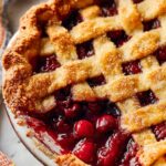 This classic Cherry Pie features a tart cherry filling thickened with cornstarch and flavored with cinnamon, ginger, and almond extract, all encased in a buttery pie crust with a beautiful lattice top. Perfect for summer using fresh or frozen cherries, it's an elegant dessert served best with a scoop of vanilla ice cream.