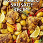 Chicken Scarpariello is a robust Italian-American dish featuring crispy roasted potatoes, seared bone-in chicken thighs, and flavorful Italian sausage, all simmered in a tangy, spicy sauce made with pickled cherry peppers, wine, and herbs. This one-pan roasted recipe offers a perfect balance of heat, acidity, and savory flavors, ideal for a hearty and comforting meal.