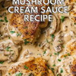 This Chicken with Creamy Mushroom Sauce recipe features tender, seared chicken breasts smothered in a rich and velvety sauce made with sautéed white mushrooms, garlic, white wine, chicken broth, heavy cream, and Parmesan cheese. Garnished with fresh parsley or chives, this flavorful and comforting dish is perfect for an easy yet elegant dinner.