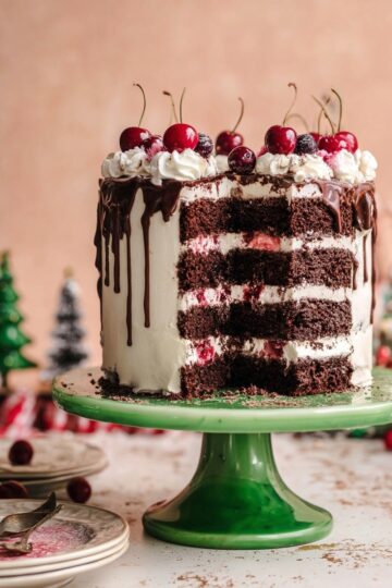 To enjoy your cake warm, microwave individual slices for just a few seconds. This quick reheat will revive the chocolate’s gooey richness and gently soften the cherries and cream topping for that fresh-from-the-oven feel.