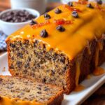 - Assemble and Serve: Pour the peanut butter glaze evenly over the cooled banana bread. Sprinkle with candied bacon pieces and additional chocolate chips for garnish. Slice, serve, and enjoy!