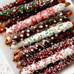 Delicious chocolate covered pretzels dipped in smooth semisweet chocolate with optional white almond bark drizzle and a variety of fun toppings like sprinkles, crushed cookies, or nuts. Perfect for a sweet and salty treat or giftable snack.