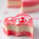 Create delightful Valentine Hearts Fudge with creamy white chocolate layers infused with red food coloring and topped with festive heart-shaped sprinkles. This easy-to-make fudge recipe is perfect for special occasions and makes romantic, bite-sized treats.