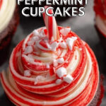 - Frost Cupcakes: Pipe swirls of the red and white peppermint frosting onto the cooled cupcakes. Garnish with peppermint baking chunks and mini candy canes.