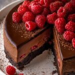 This luxurious Dark Chocolate Raspberry Cheesecake combines a rich Oreo crust with a velvety chocolate cheesecake filling punctuated by fresh raspberries. Topped with a smooth chocolate ganache and garnished with extra raspberries and cocoa powder, this dessert is perfect for special occasions or indulgent treats.