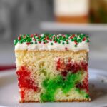 - Serve: Before serving, sprinkle red and green decorations or sprinkles on top for a festive look. Slice and enjoy this colorful holiday dessert!