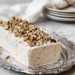 This Christmas Semifreddo is a festive no-bake frozen dessert combining rich whipped cream, spiced egg yolks, and crunchy roasted almonds and walnuts with sweet golden and regular raisins. Perfect for holiday gatherings, its smooth texture and warming spices of cinnamon, cloves, nutmeg, and vanilla create a deliciously elegant treat.