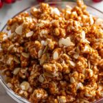 A festive and crunchy Christmas popcorn candy coated with warm spiced caramel and crunchy almonds. This sweet treat combines the cozy flavors of cinnamon, ginger, allspice, and cloves with a buttery caramel coating for a perfect holiday snack or dessert.