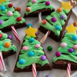 - Cut and Assemble Trees: Cut the cooled brownies in half, then slice each half into triangle shapes to resemble Christmas trees. Eat any offcuts. Insert candy cane sticks into the base of each brownie triangle to form the tree trunks.