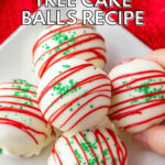 These Little Debbie Christmas Tree Cake Balls are a festive and delicious holiday treat combining creamy cheesecake, moist cake, and sweet white chocolate with a festive red candy drizzle and green sanding sugar perfect for celebrating the season.