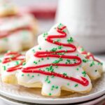 Copycat Little Debbie Christmas Tree Cakes are a festive holiday treat featuring tender yellow cake layered with fluffy marshmallow filling, dipped in smooth white almond bark coating, and decorated with green sanding sugar and red candy melt stripes. Perfect for celebrations, these charming tree-shaped cakes combine classic flavors with an eye-catching appearance.