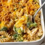 - Add Crispy Onions and Finish Baking: Remove the cover, sprinkle crispy fried onions over the top, and bake uncovered for an additional 8 to 10 minutes until onions are golden and cheese is bubbly. Serve warm.