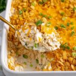 - Assemble the Casserole: Spread the chicken mixture evenly into the prepared baking dish. Sprinkle the buttery cracker topping evenly over the surface of the casserole.