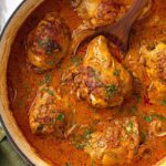 - Simmer the chicken: Return the chicken along with any accumulated juices to the pot. Bring to a gentle simmer, cover, and cook for 30 to 35 minutes until the chicken is tender and cooked through.