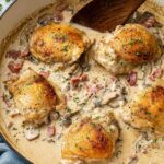Coq au Riesling is a classic French-inspired dish featuring tender chicken thighs simmered in a rich, creamy Riesling wine sauce with mushrooms, bacon, and fresh herbs. This elegant yet approachable recipe delivers deep flavors through slow simmering and finishes with a velvety cream sauce, perfect for a comforting dinner.