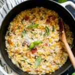 This creamy and flavorful Corn Risotto features fresh corn infused chicken stock, sautéed corn kernels, and crispy prosciutto, all enriched with Parmesan cheese and fresh herbs. A perfect comforting dish with a luxurious texture and delightful corn essence.