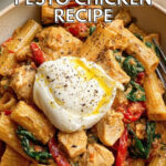 A rich and flavorful Creamy Tomato Pesto Pasta with tender chicken, vibrant sun-dried tomatoes, roasted red peppers, and fresh spinach, all topped with creamy burrata cheese. This comforting pasta dish combines Italian herbs and a luscious tomato-pesto cream sauce for an easy and satisfying meal perfect for weeknight dinners.