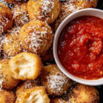 This Air Fryer Cacio E Pepe Arancini recipe transforms leftover risotto into crispy, cheesy bite-sized Italian snacks filled with mozzarella and coated with a savory Pecorino Romano and panko crust. Perfectly golden and delicious, these arancini are served with flavorful marinara and pesto sauces for dipping.