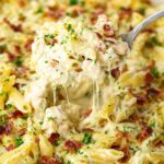 - Serve: Remove from oven and serve the Chicken Bacon Ranch Pasta casserole warm for best flavor and texture.