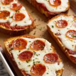 This easy oven-baked French Bread Pizza recipe features a secret buttery garlic herb spread and stays perfectly crispy and crunchy. Crafted with a light and airy French bread base topped with flavorful garlic butter, pizza sauce, melty mozzarella, pepperoni, and Parmesan cheese, it’s a crowd-pleaser perfect for a quick weeknight dinner or casual gathering.