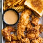 Raising Cane’s Chicken Tenders recipe featuring juicy chicken tenders marinated in a flavorful buttermilk blend, double coated in seasoned flour, and fried to crispy perfection. Serve with crinkle-cut fries and homemade Cane's Sauce for a delicious, crowd-pleasing meal.