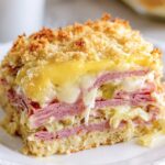 Reuben Casserole is a hearty, crowd-pleasing dish that layers the classic flavors of a Reuben sandwich—rye bread, pastrami, sauerkraut, Swiss cheese, and a tangy special sauce—baked together into a comforting casserole perfect for gatherings.