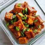 Crispy Tofu with Peanut Sauce is a delicious and easy-to-make plant-based dish featuring oven-baked tofu cubes coated in a crispy cornstarch layer and covered with a creamy, savory peanut sauce. Perfect as a snack or a main course for 2 to 4 servings.