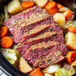 This Crockpot Corned Beef and Cabbage recipe offers a flavorful and tender meal perfect for comforting dinners. The slow cooking method ensures the brisket becomes juicy and infused with spices, while the vegetables absorb rich flavors. Including traditional elements like baby carrots, red potatoes, and cabbage infused with caraway seeds, this dish is a classic hearty Irish-American favorite.