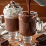 - Assemble Drink: Pour the hot chocolate into mugs and top with peppermint whipped cream. Garnish with chocolate shavings, sprinkles, or crushed peppermint candy if desired before serving.