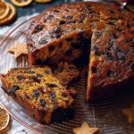 This traditional Christmas Cake is a rich and moist fruitcake filled with mixed dried fruits, nuts, and warm spices, soaked with cherry brandy for extra flavor. Perfect for holiday celebrations, it is baked low and slow for a tender crumb and can be matured by feeding with brandy weekly, enhancing its festive taste.