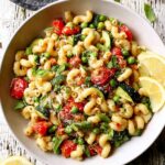 When I’ve had friends over, I like to serve this pasta primavera in warm, shallow bowls and garnish with edible flowers or microgreens for a pop of elegance. It’s simple but looks so thoughtful and makes the meal feel special.