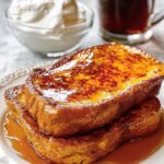 - Serve: Serve the golden French toast immediately topped with whipped cream and maple syrup for a decadent breakfast experience.