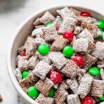Reindeer Food is a festive and fun holiday treat made with corn or rice Chex cereal coated in a delicious mix of melted chocolate, butter, and peanut butter, then dusted with powdered sugar and mixed with mini peanut butter cups and colorful red and green M&M’s. This easy-to-make snack is perfect for holiday parties or to leave out for Santa's reindeer on Christmas Eve.