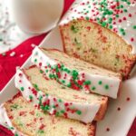 - Glaze the bread and finish: Spread the icing over the cooled loaf using a rubber spatula, smooth it out, and sprinkle additional Christmas sprinkles on top if desired. Let the glaze set before slicing and serving.