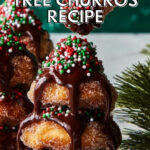 This festive Christmas Tree Churros recipe features crispy, golden churro rings stacked to form a delightful holiday tree, topped with rich chocolate ganache and colorful sprinkles. Perfect for a fun and impressive dessert during the holiday season.