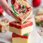 This festive Christmas Fudge recipe features creamy white chocolate combined with sweetened condensed milk and a hint of peppermint. Vibrant red and green swirls and optional holiday sprinkles make it a perfect sweet treat for the holiday season. Easy to prepare in the microwave, this fudge sets in the fridge and is ideal for sharing at parties or gifting.