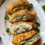 A flavorful and creamy Garlic Herb Stuffed Chicken recipe featuring tender chicken breasts filled with a savory cream cheese and herb mixture, coated in seasoned panko breadcrumbs, and baked to perfection. This dish is perfect for a delicious and impressive dinner.