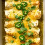 - Garnish and Serve: Remove the enchiladas from the oven and top with thinly sliced jalapeños and fresh cilantro leaves. Serve warm and enjoy.