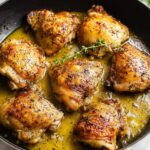 This baked chicken thighs recipe features bone-in, skin-on chicken seared to golden perfection and then baked in a flavorful pan sauce made with white wine, garlic, fresh herbs, and lemon juice. An optional rich gravy made with a simple roux enhances the dish, making it perfect for a comforting dinner served alongside mashed potatoes.