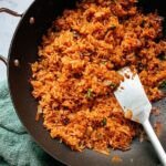 Kimchi Fried Rice is a delicious and spicy Korean-inspired dish featuring sautéed garlic, green onions, mushrooms, and carrots mixed with tangy kimchi, vegan sausages, and day-old white rice, all tossed in a flavorful gochujang-based sauce. This easy stovetop recipe is perfect for a quick and satisfying meal packed with bold flavors and a hint of charred crispiness.
