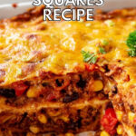 A hearty and flavorful Loaded Taco Squares Casserole featuring seasoned ground beef, black beans, corn, vegetables, and layers of corn tortillas and cheddar cheese, baked to perfection for a comforting meal perfect for family dinners or parties.
