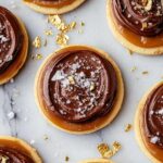 - Add Chocolate Topping: Melt the milk chocolate in a microwave-safe bowl in 30-second increments, stirring until smooth. Spoon melted chocolate over the caramel on each cookie. While still warm, sprinkle with flaky sea salt and edible gold leaf if desired. Let the cookies cool completely to allow caramel and chocolate to set.